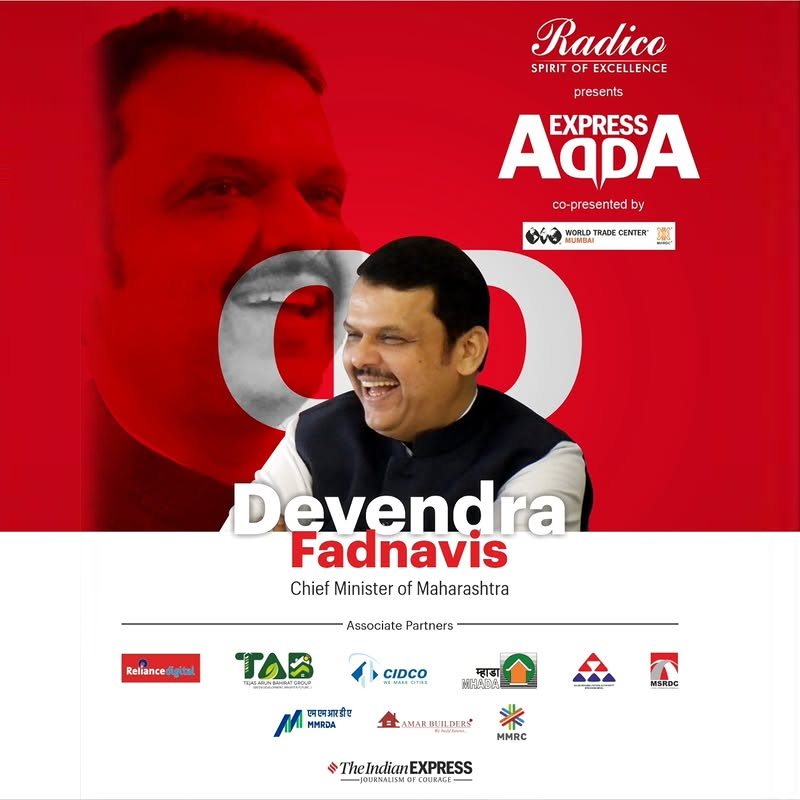The Indian Express Adda event was held in Mumbai, featuring Maharashtra's Chief Minister, Shri Devendra Fadnanavis, in an engaging conversation with Anant Goenka and Vandita Mishra. The event covered various topics, including infrastructure, environment, politics, and development, showcasing the CM's insights and wit.